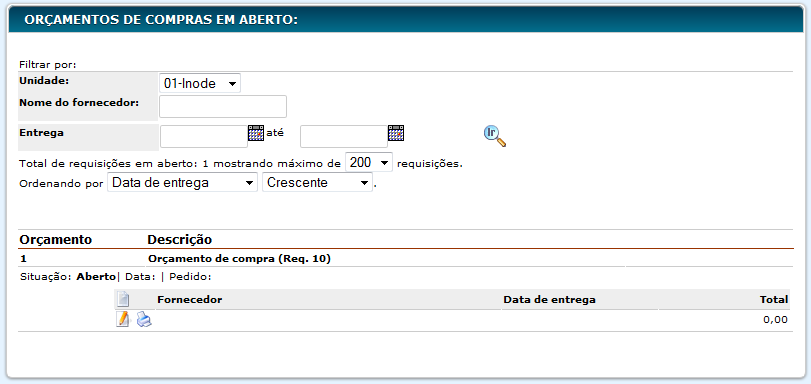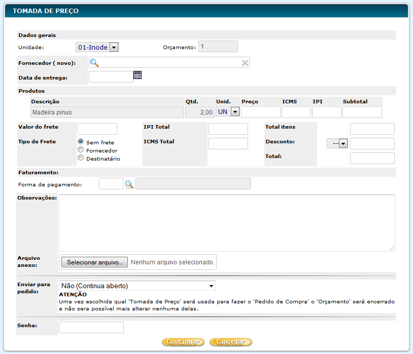 É aqui que o comprador vai emitir as tomadas de preços para os fornecedores. Podem ser emitidas quantas tomadas de preços sua empresa desejar.
