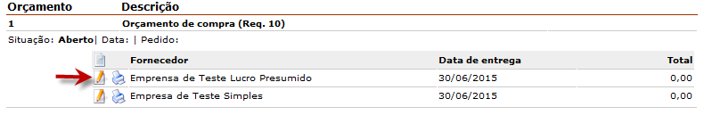 Para isto o comprador deverá clicar no ícone de edição
