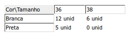 Para cadastrar um produto você escolhe a posição na grade ( Cor Branca, Tamanho 36) e informa a quantidade.