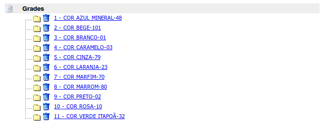As grades de definições de seus produtos são montadas utilizando-se os tipos de grade definidos no link Estoque: Tipos de grade.
