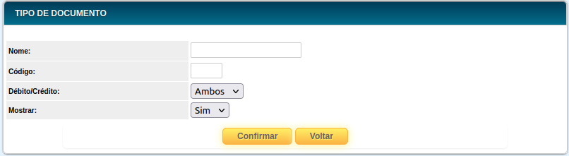 Esta página é utilizada para cadastrar os tipos de documento utilizados pela empresa.