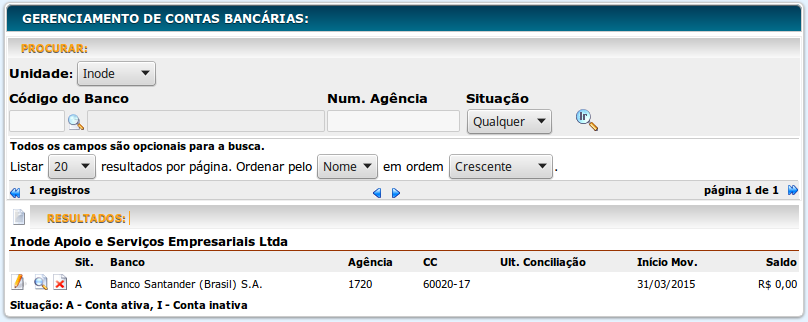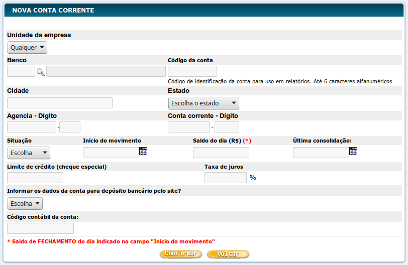 - Unidade da empresa: Escolha a unidade da empresa desta conta corrente.