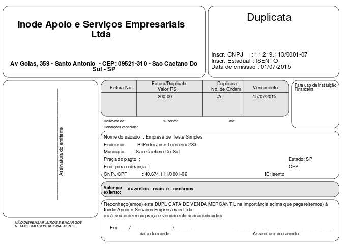 Veja abaixo como são os modeles dos Boletos e Duplicatas.