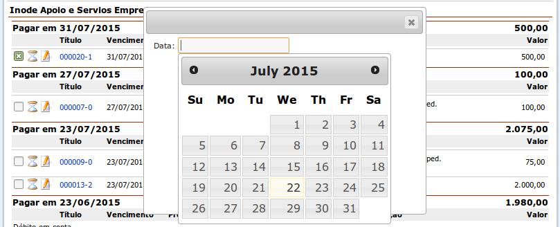 Pronto. Só isto. Os títulos adiados somente aparecerão na Fila do Vencimentos do Dia na nova data escolhida, bem como todos os seus relatórios e Fluxo de Caixa também já estarão ajustados para esta nova data.