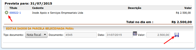 para gravar as informações e retirar a previsão do título.