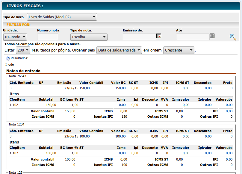 Esta página é o Gerenciamento de Livros Fiscais e apresenta todas as notas, de acordo com o Tipo de Livro selecionado.